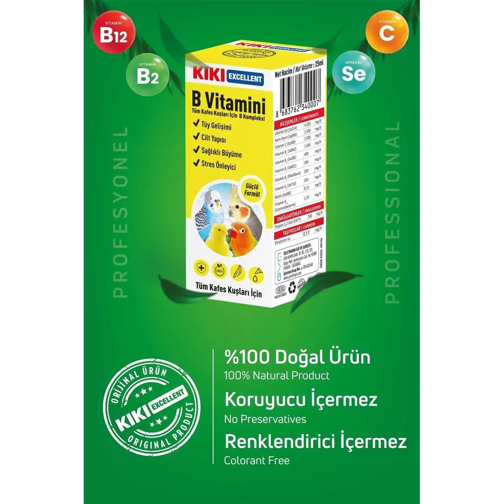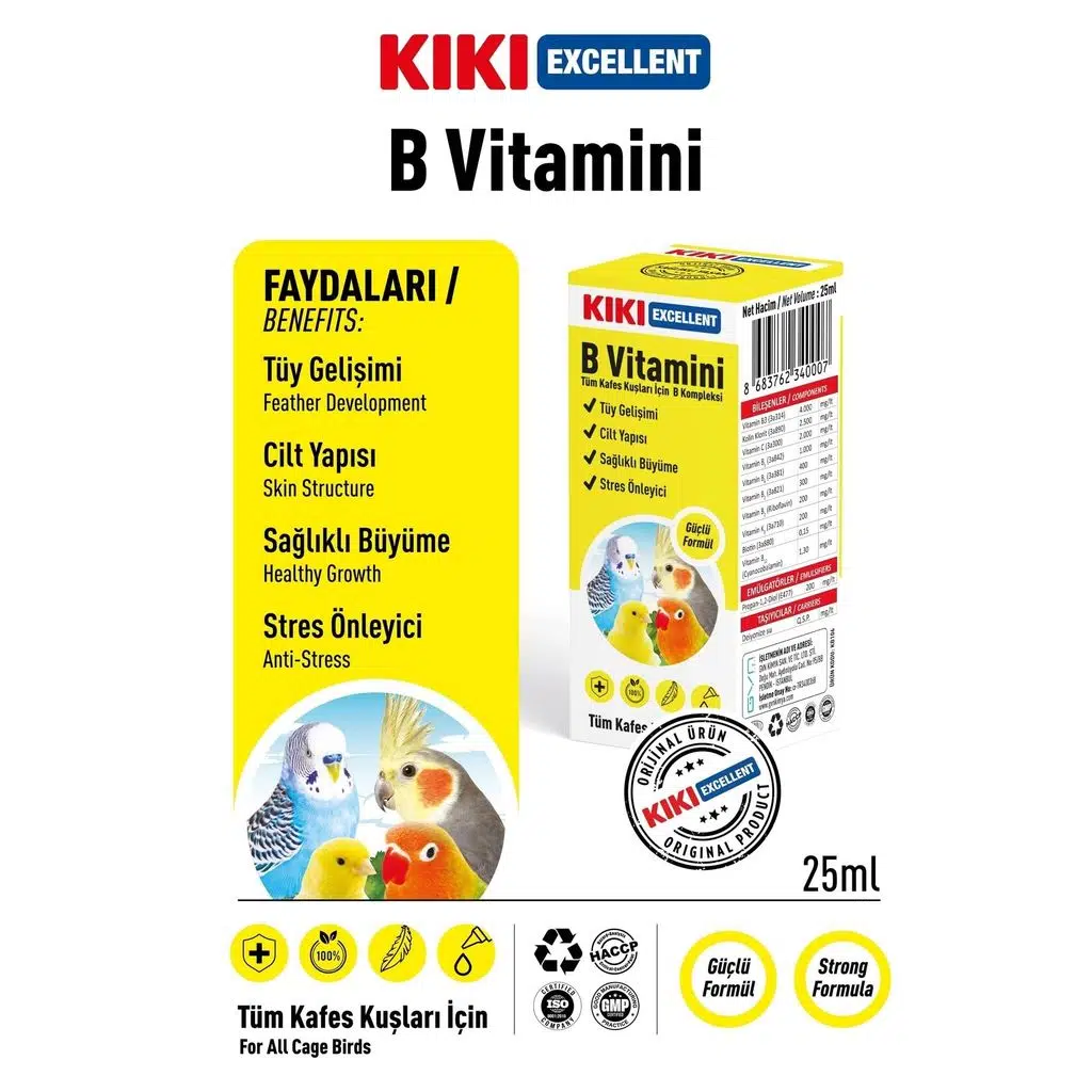 | Etiketler | Kiki Excellent Kuşlar İçin B Vitamini 25 ML |