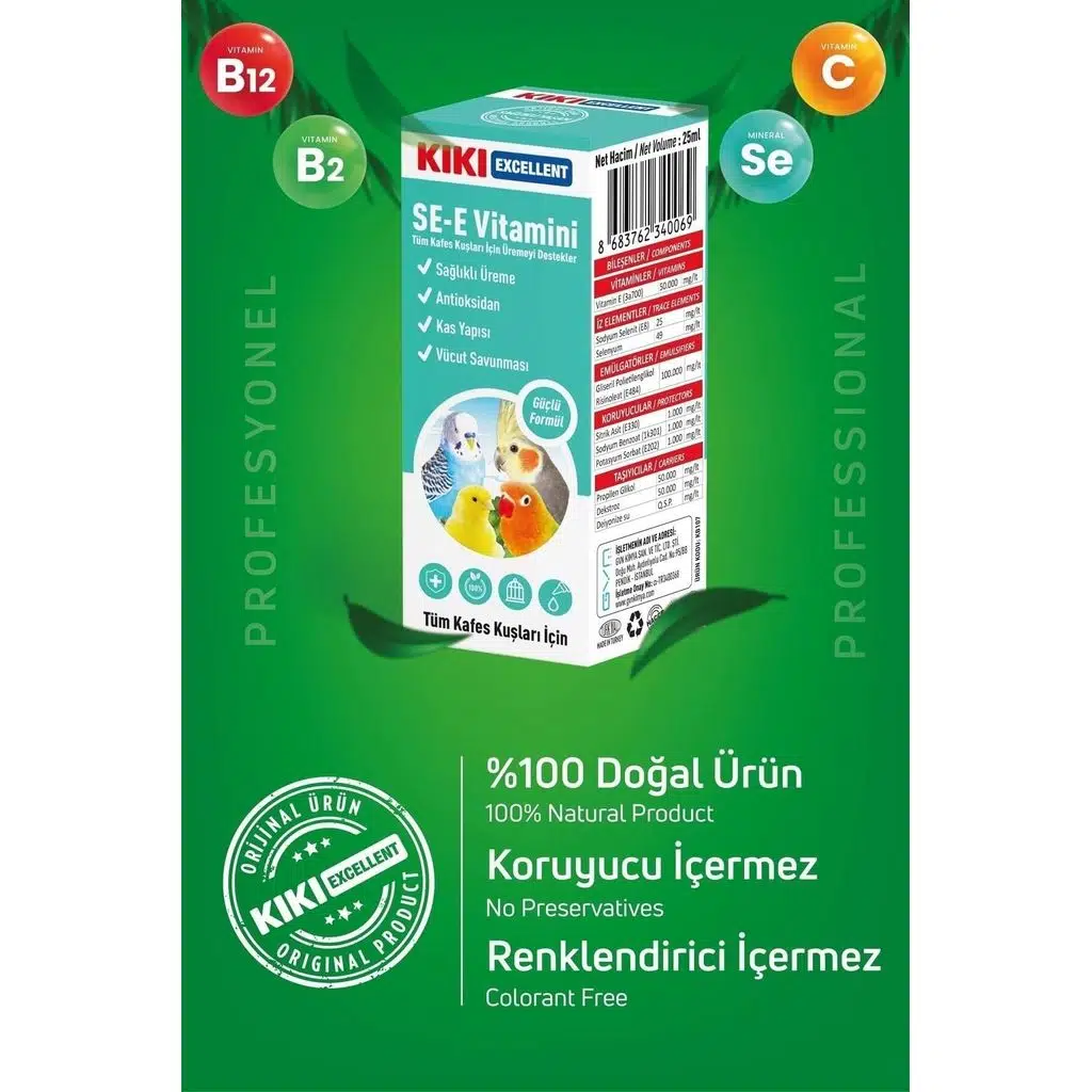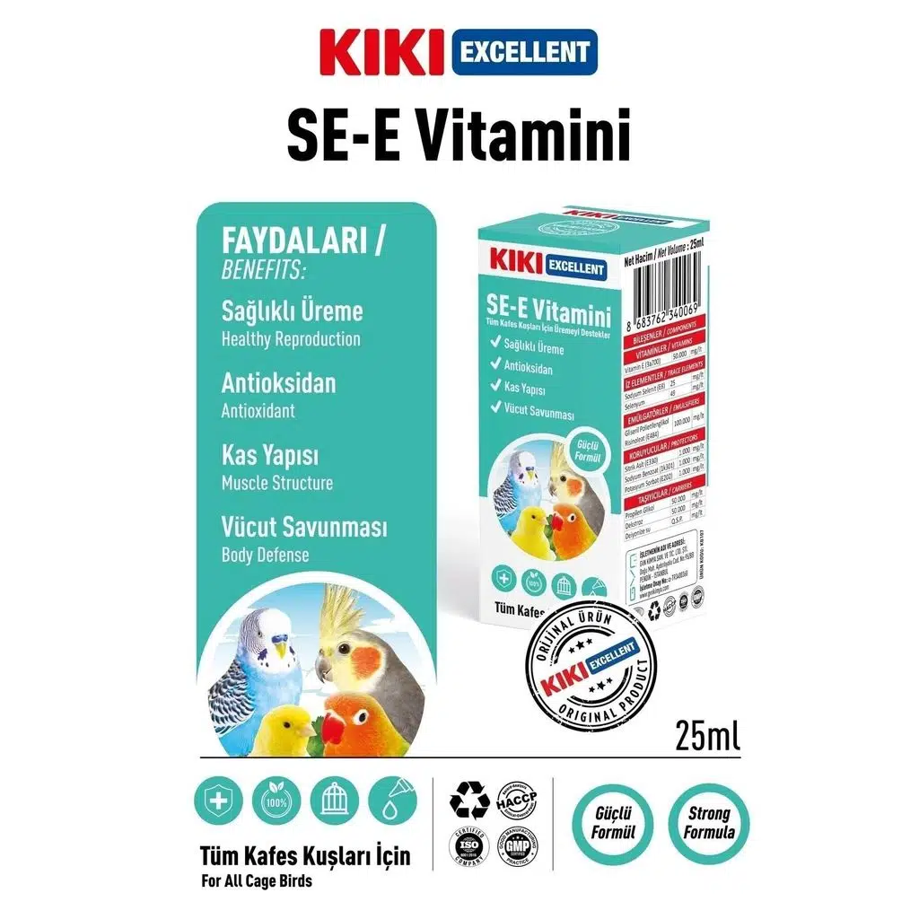 | Etiketler | Kiki Excellent Kuşlar İçin SE-E Vitamini 25 ML |