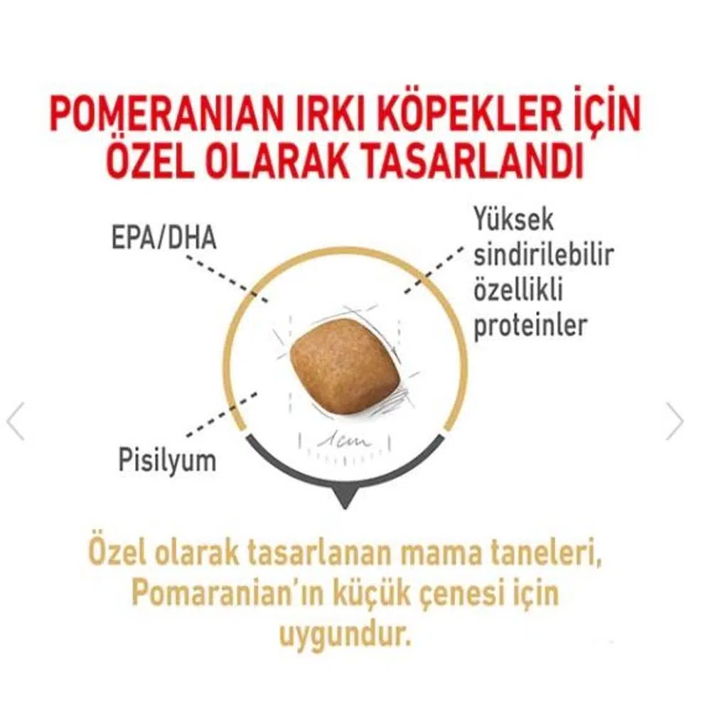Royal Canin Pomeranian, Pomeranian ırkı köpekler için özel olarak formüle edilmiş bir mamadır. Bu mama, Pomeranianların beslenme ihtiyaçlarını karşılamak ve sağlıklı bir yaşam sürmelerine yardımcı olmak amacıyla tasarlanmıştır.